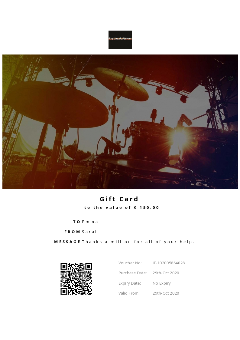Rhythm & Strums allows you to purchase instantly printable gift vouchers, special offers and tickets using the Voucher Connect platform.